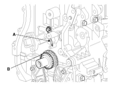 21. Remove the timing chain tensioner (A) and timing chain tensioner arm (B).