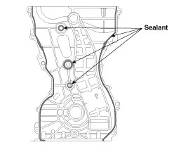 - When applying sealant gasket, sealant must not protrude into the inside of the oil pan.