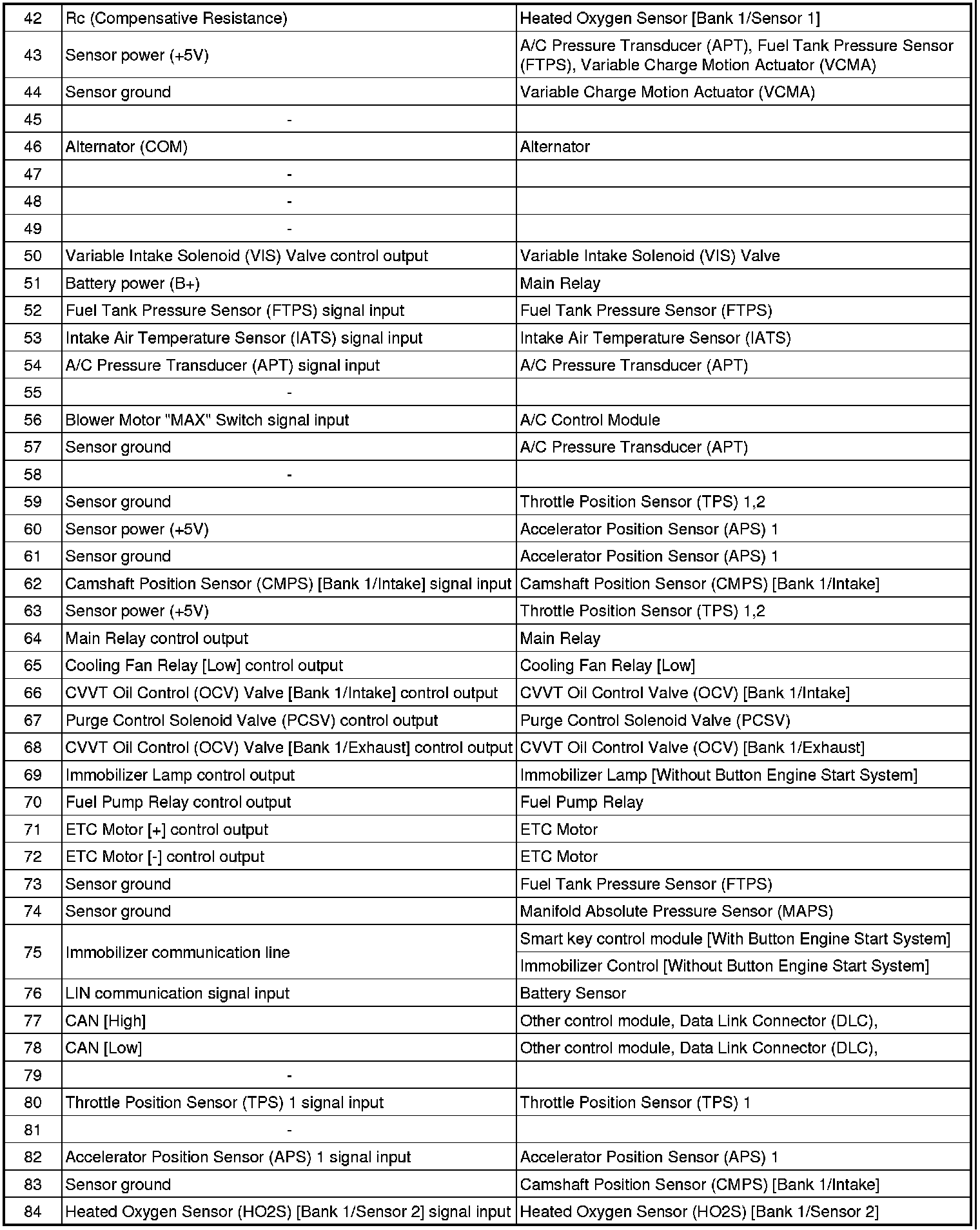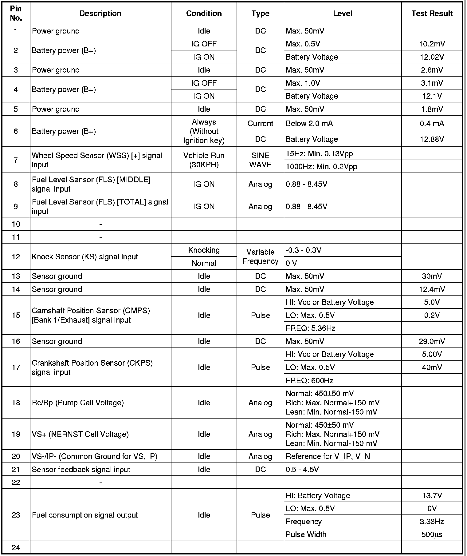 ECM Terminal And Input/Output signal