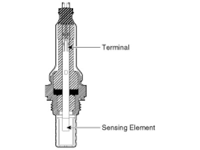 The sensor must be hot in order to operate normally. To keep it hot, the sensor has a heater which is controlled by the ECM via a duty cycle signal. When the exhaust gas temperature is lower than the specified value, the heater warms the sensor tip.