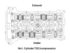 A. Check only the valve indicated as shown. [No. 1 cylinder : TDC/Compression] measure the valve clearance.