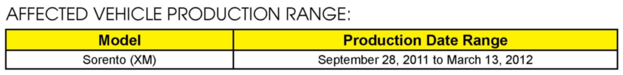AFFECTED VEHICLE PRODUCTION RANGE