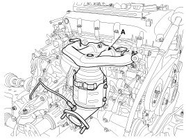 Loosen the exhaust manifold stay bolts, and then remove the exhaust manifold (A).