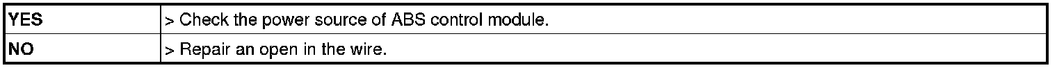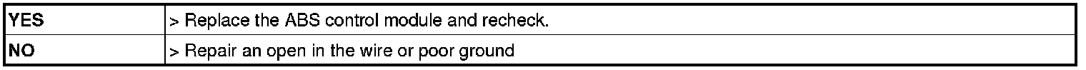 1. Disconnect the connector from the ABS control module and turn the ignition switch ON.