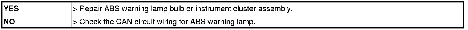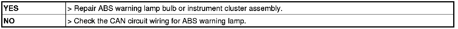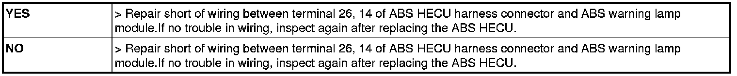 Check for continuity between terminal (M01-C) 1 of the cluster harness side connector and terminal 14 of ABS HECU harness side.