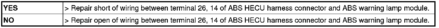 2. Check for continuity between terminal (M01-C) 2 of the cluster harness side connector and terminal 26 of ABS HECU harness side.