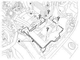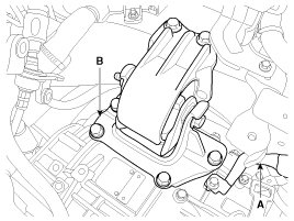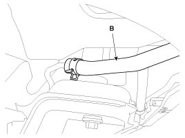 2. Remove the engine cover and the air duct (B).
