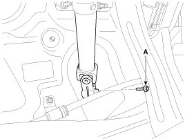 18. Remove the steering u-joint mounting bolt (A).