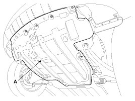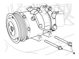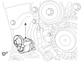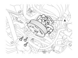 Rotate the drive belt tensioner arm (A) counterclockwise moving the tensioner pulley bolt with wrench. After putting the belt on the tensioner pulley, release the tensioner pulley slowly.