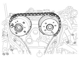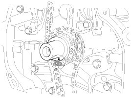 5. Install the timing chain. To install the timing chain with no slack between each shaft (cam, crank), follow the below procedure.