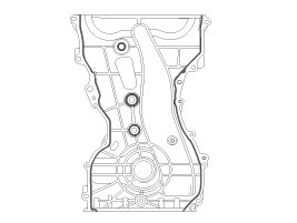 (5) The dowel pins on the cylinder block and holes on the timing chain cover should be used as a reference in order to assemble the timing chain cover to be in exact position.