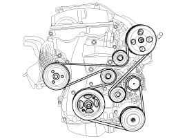 Crankshaft pulley -> A/C pulley -> Alternator pulley -> Idler #1 pulley -> power steering oil pump pulley -> Idler #2 pulley -> Water pump pulley -> Tensioner pulley.