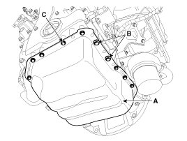 - When applying sealant gasket, sealant must not be protruded into the inside of oil pan.