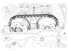 Check that the mark(A) of the CVVT sprockets are in straight line on the cylinder head surface as shown in the illustration.