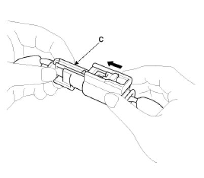 Hold both connector halves and press firmly until the projection(C) of the sleeve-side connector clicks to lock.