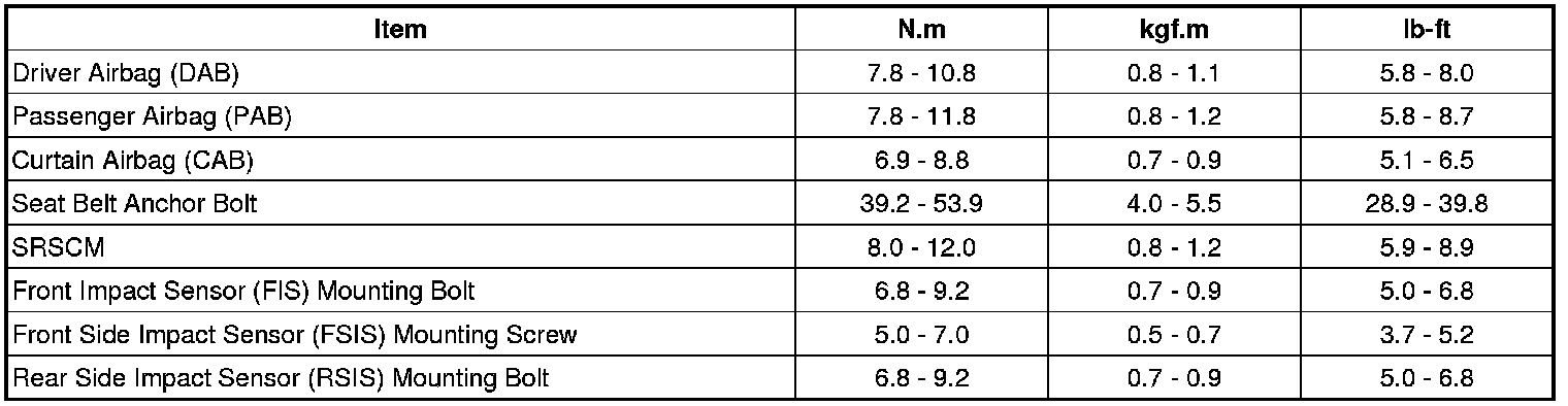 Tightening Torques
