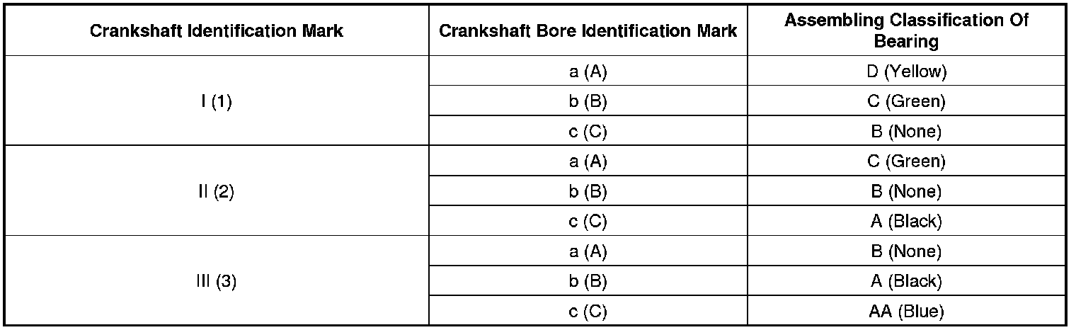 Main Bearing Size Codes