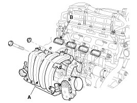 When installing the intake manifold, tighten the bolts and nuts with pre-torque first, and then tighten the bolts and nuts with specified torque in the sequence shown.