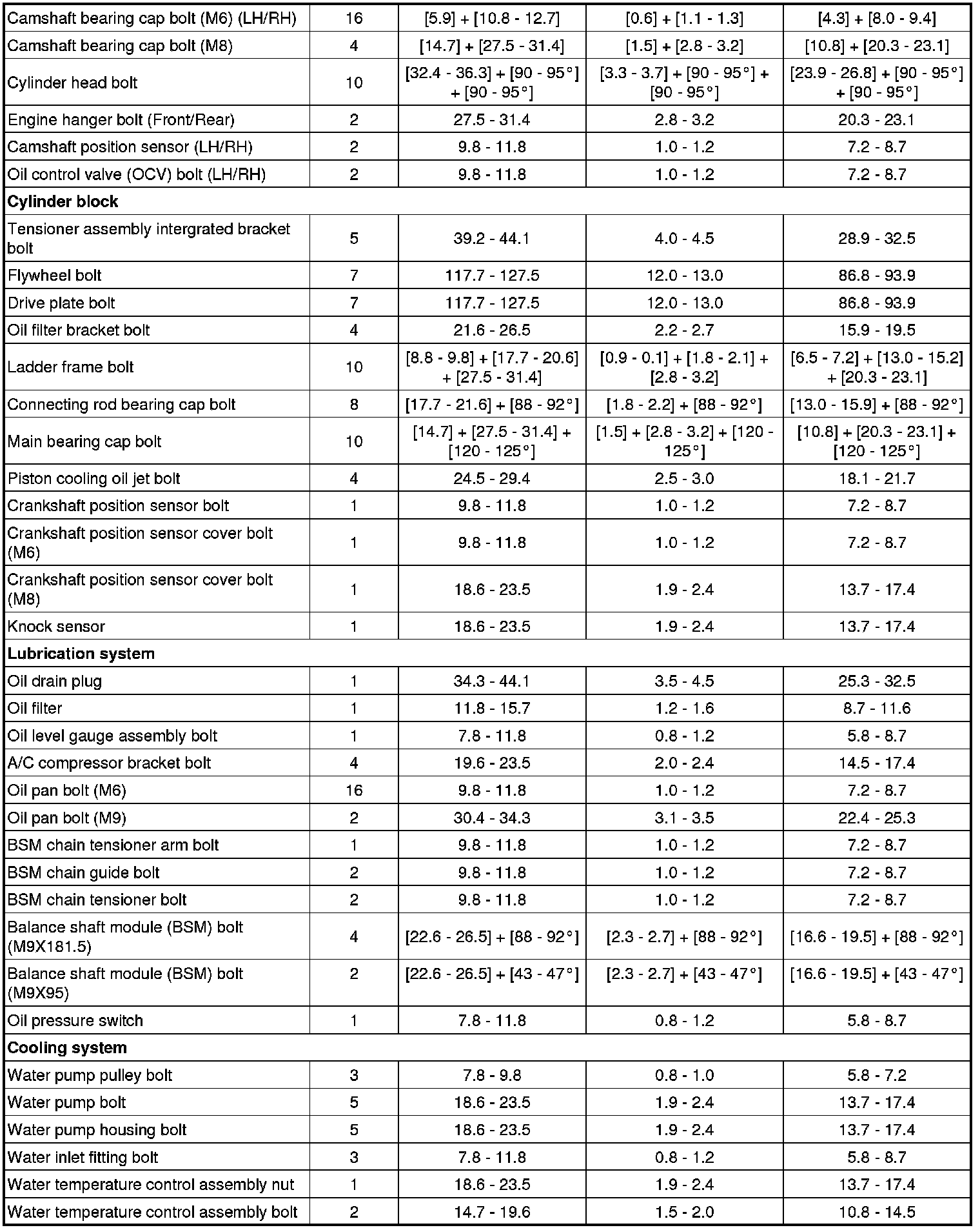 Tightening Torques