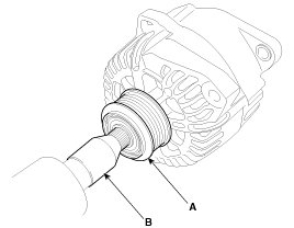 3. Remove the pulley (A) using the SST (09373-27000) (B).