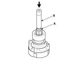 Check that there is no continuity between the (+) brush holder (A) and (-) plate (B). If there is continuity, replace the brush holder assembly.