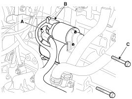 7. Remove the 2 bolts (C) holding the starter, then remove the starter.