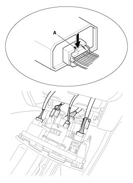 4. Disconnect the connectors (A) from the seat warmer switch module.