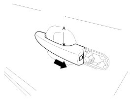 1. Remove the cap and bolt, then remove the outside handle cover (A).