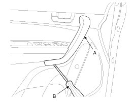 3. Using a screwdriver (B), remove the door grip handle cover (A).