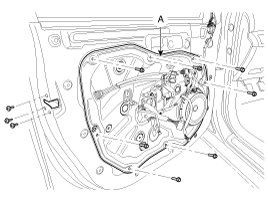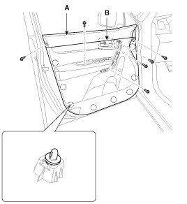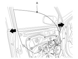 5. After loosening the mounting screws, then remove the door trim (A).
