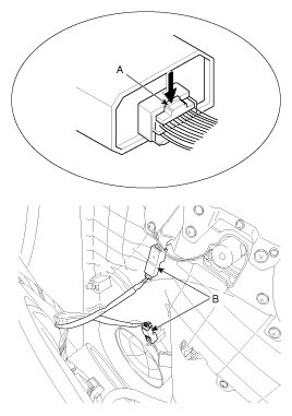 5. Push the lock pin (B), disconnect the connector (A).