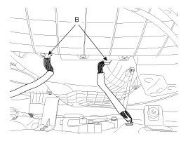 8. Push the lock pin, disconnect the connectors (B).
