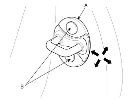 4. Using a screwdriver, remove the door inside handle cap (B).