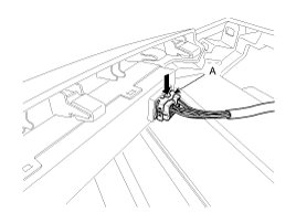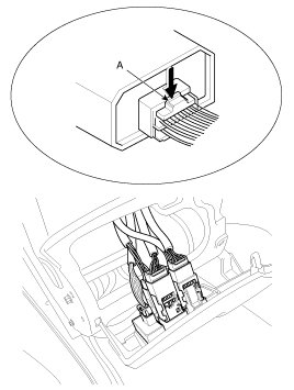 6. Remove the floor mat, then disconnect the air bag connector (A).