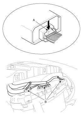 8. Push the lock pin (A), disconnect the connectors (B).