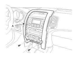 4. After loosening the mounting screws, then remove the center fascia panel (A).