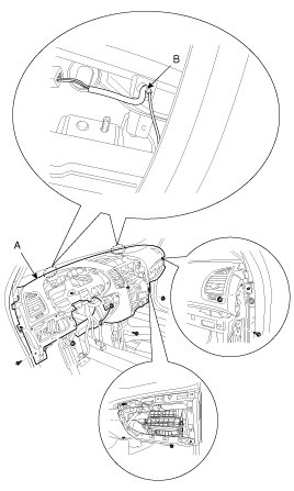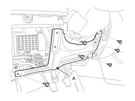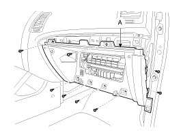 2. After loosening the mounting screws, then remove the crash pad lower panel (A).