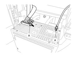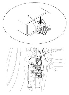5. Push the lock pin, disconnect the connector (A).