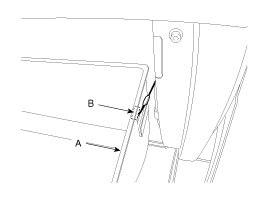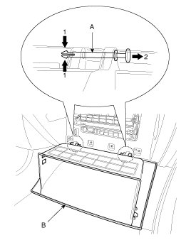 3. Disconnect the damper (B), from the glove box (A).