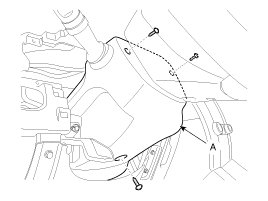 6. After loosening the mounting screws, then remove the crash pad lower cover (A).