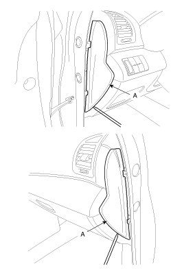 1. Using a screwdriver or remover, remove the crash pad side cover (A).