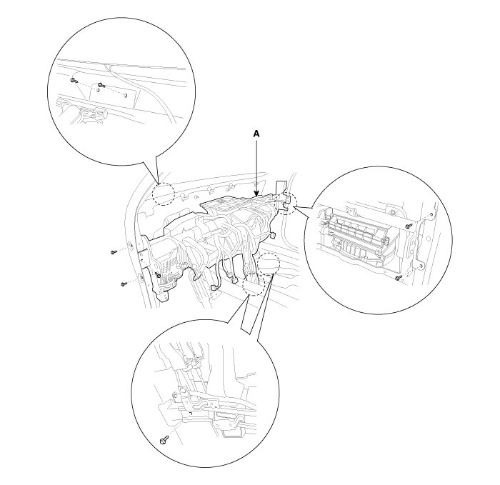 7. After loosening the mounting screws, then remove the glove box housing (A).