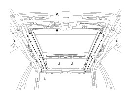 2. Remove the panorama roof panel mounting bracket (A) loosening the mounting bolt.