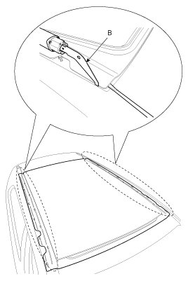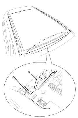 8. Open the space between chassis and sunroof using flathead screwdriver, and then cut the sealant of edge using a tool(09816-2P121, 09816-2P122) (B).