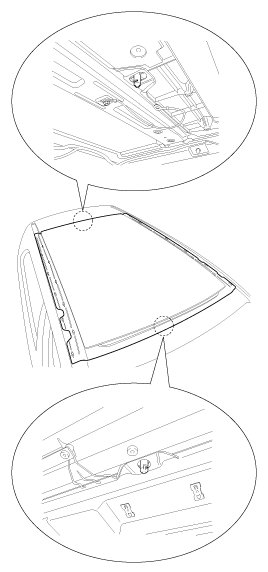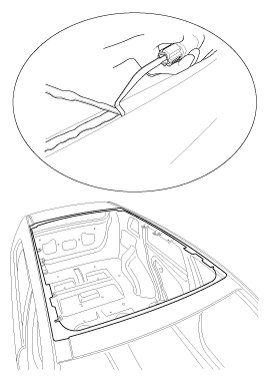 11. Reinstall all remaining removed parts. Install the rearview mirror after the adhesive has dried thoroughly. Advise the customer not to do the following things for two the three days :
