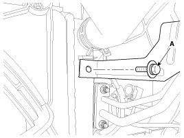 12. Remove the A/C high pressure pipe bracket mounting bracket (A).