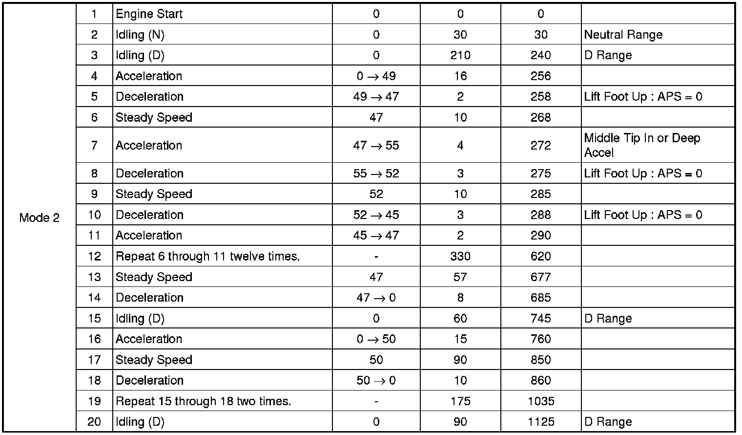 Kia OBDII Drive Cycle consists of two modes (Mode 1 and Mode 2) and the Mode 2 is to perform the catalyst diagnostics on Dephi EMS only.