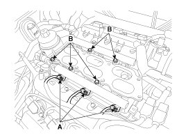 5. Remove the delivery pipe installation bolts (B).