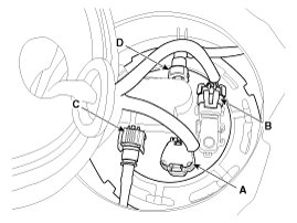 1. Remove the sub fuel sender cover and disconnect the sub fuel sender connector .
