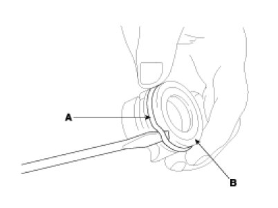 2. Remove the dust cover (B) from the ball joint (A).